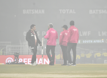 अंपायर केएन पंडित और अनंतपद्मनाभन ने रात 8 बजे के इंस्पेक्शन के दौरान कुछ विजिबिलिटी ड्रिल किए। एक अंपायर ने पिच के दूसरे छोर पर गेंद पकड़ी, जबकि दूसरा अंपायर डीप मिडविकेट पर यह देखने गया कि गेंद दिख रही है या नहीं। जब यह स्पष्ट हो गया कि गेंद आसानी से नहीं दिख रही है, तो एक और इंस्पेक्शन तय किया गया।