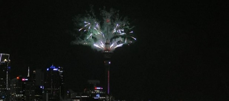 पांच मिनट के इस शो में 240 मीटर (787 फीट) ऊंचे टॉवर, जो न्यूजीलैंड की सबसे ऊंची इमारत है, की अलग-अलग मंजिलों से 3,500 पटाखे चलाए गए।