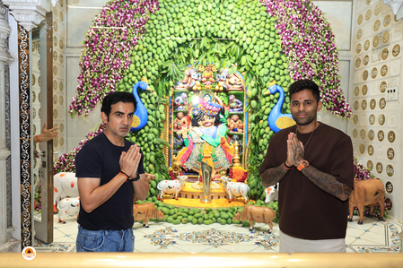 टी20 विश्व कप जीतने की मन्नत पूरी होने के बाद सूर्यकुमार और गंभीर हनुमान जी को धन्यवाद देने के लिए मंदिर पहुंचे थे। इस दौरान मंदिर में धज्या पूजन के साथ-साथ खास रस्में निभाई गईं। सालंगपुर कष्टभंजन हनुमान जी मंदिर के संतों ने टीम इंडिया को आगे भी शानदार प्रदर्शन करने का आशीर्वाद दिया। सूर्यकुमार यादव ने कहा कि हनुमान जी की कृपा से भारतीय टीम टी20 वर्ल्ड कप को जीतने में सफल रही। गंभीर और सूर्यकुमार की एक झलक पाने के लिए बड़ी संख्या में लोग मंदिर पहुंचे।